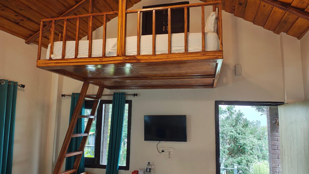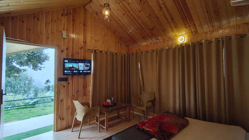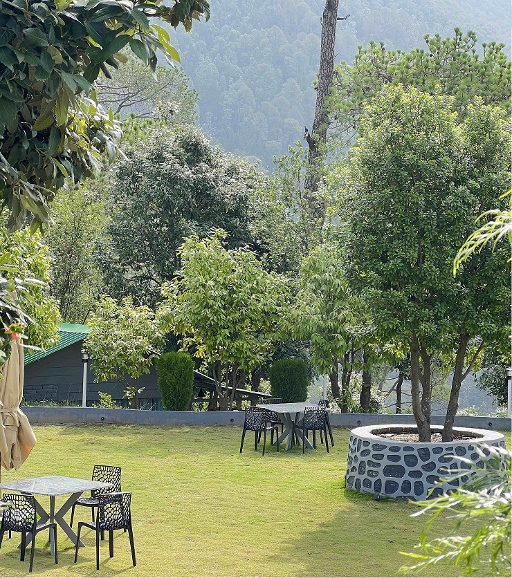The Himalayan-themed restaurant at Kumaoni Karavan is a visual and sensory delight, reflecting the region’s charm through its rustic decor and panoramic mountain views.