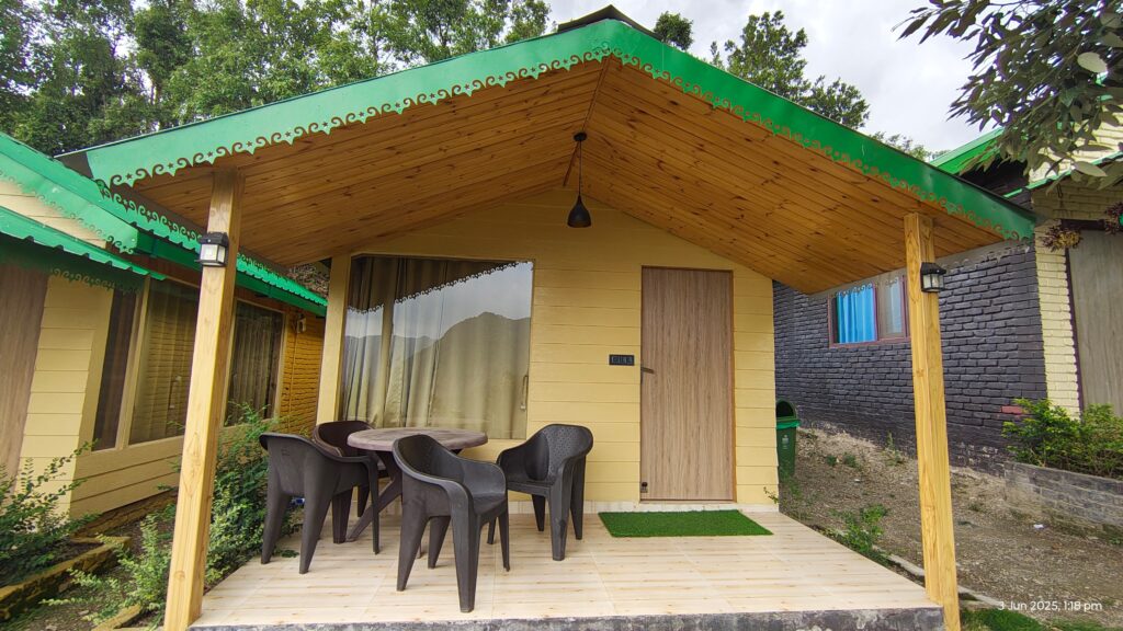 The Himalayan-themed restaurant at Kumaoni Karavan is a visual and sensory delight, reflecting the region’s charm through its rustic decor and panoramic mountain views.